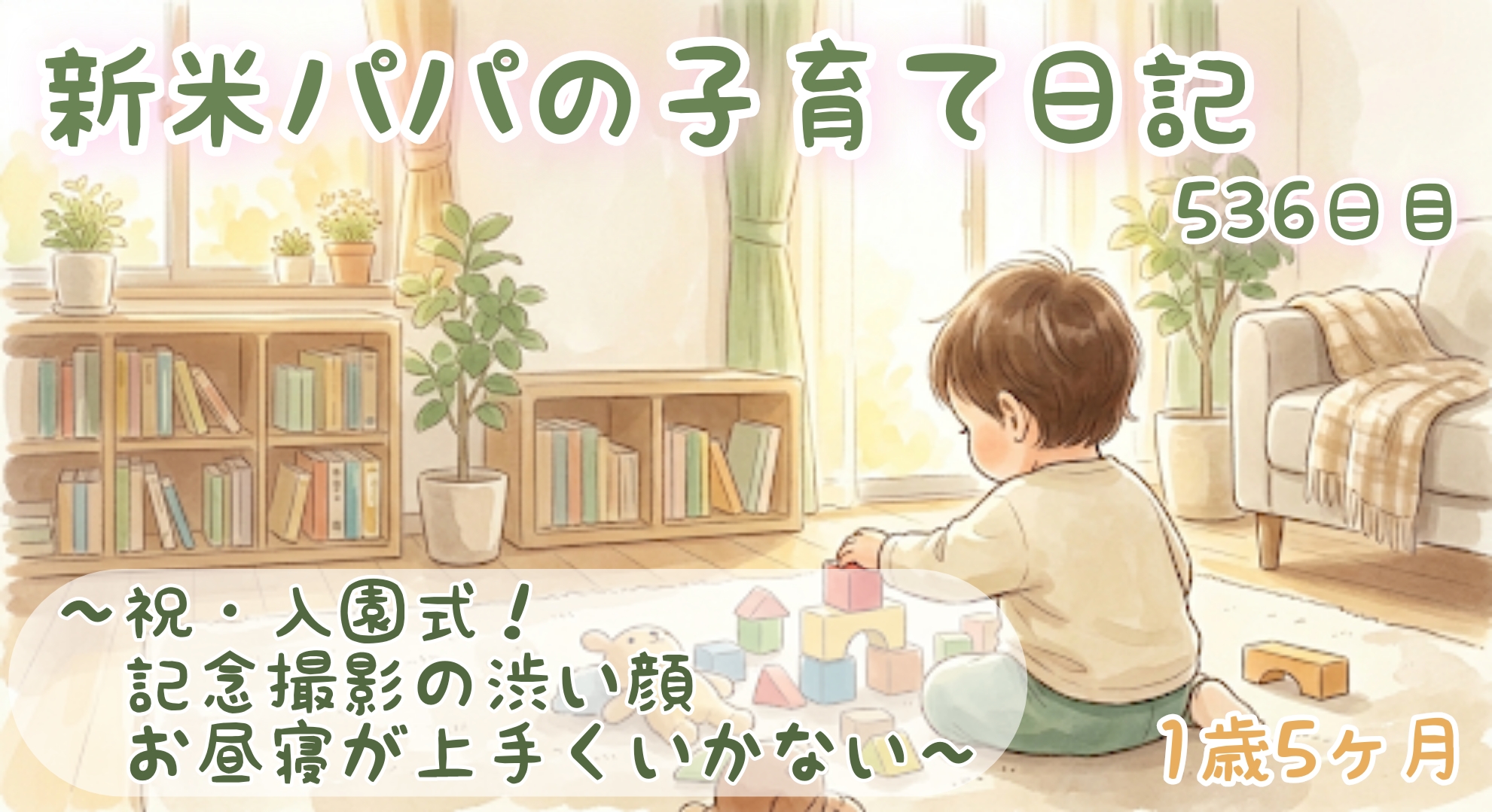 今日は待ちに待った入園式!その時の様子や、帰宅後のお昼寝事情についての日記です。
