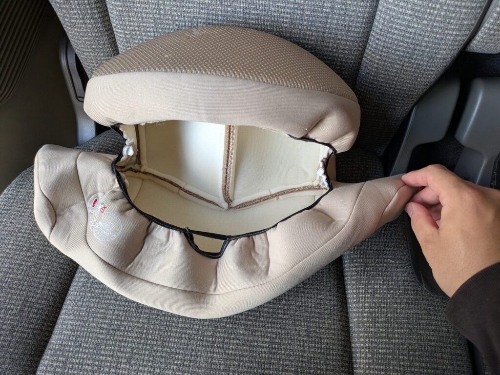 【写真で解説】サイベックス パラスG2のシートカバー外し方・洗い方。おむつ漏れも洗濯機でスッキリ!